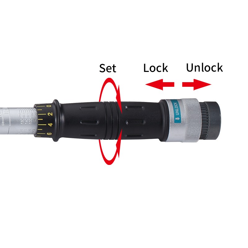 4,根据需要调节所需的扭矩,并确认调节机构处于锁定状态才可使用。应避免水分与油污进入扭力扳手本体内,以防零件锈蚀。